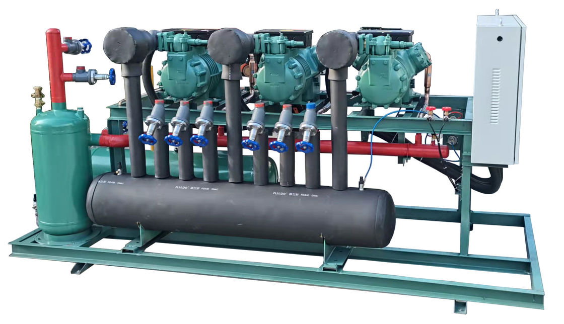 ◆ Les compresseurs multiples étaient connectés en parallèle pour fournir une plus grande capacité partageant le même tuyau de refoulement, le même tuyau d'aspiration, le condenseur,