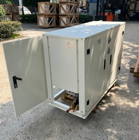 Cette unité de condensation refroidie à l'eau de 8 chevaux de la société KUB est conçue pour les applications de stockage à froid à température moyenne.l'unité fonctionne à une pression de 16 kg avec des performances stables et fiables.